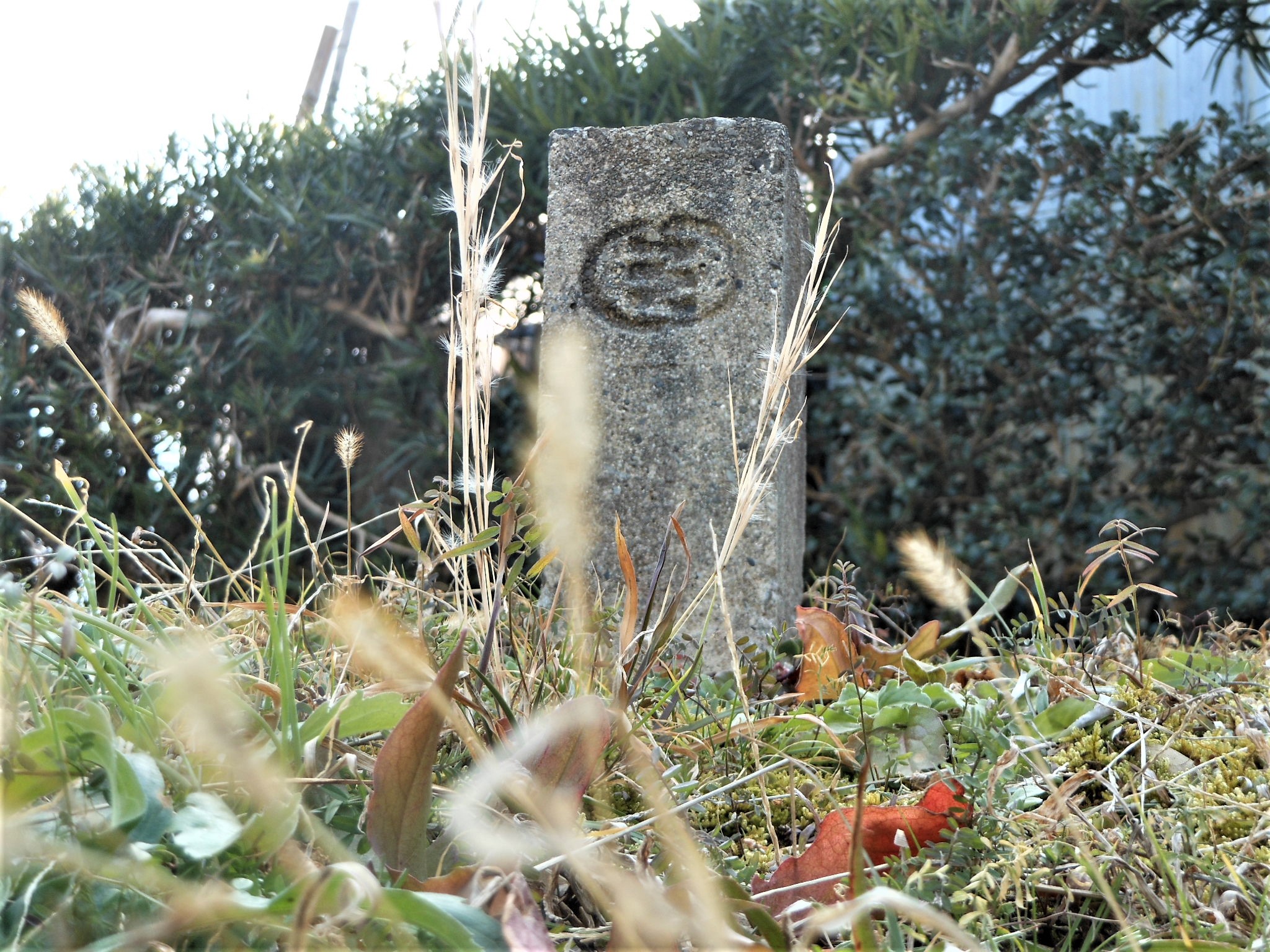 息を切らしながら登っていくと、やがて山頂付近に到着しました。ここには三角点がありました。